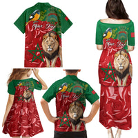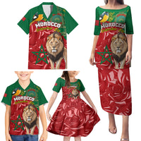 Morocco Independence Day Family Matching Puletasi Dress and Hawaiian Shirt Barbary Lion With Moussier Redstart