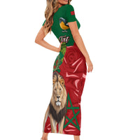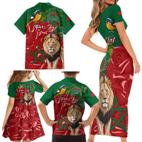 Morocco Independence Day Family Matching Short Sleeve Bodycon Dress and Hawaiian Shirt Barbary Lion With Moussier Redstart LT01