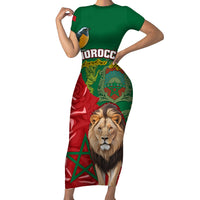 Morocco Independence Day Family Matching Short Sleeve Bodycon Dress and Hawaiian Shirt Barbary Lion With Moussier Redstart