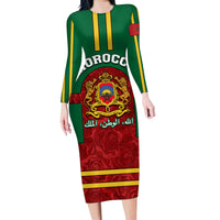 Morocco Proclamation Day Family Matching Long Sleeve Bodycon Dress and Hawaiian Shirt Marruecos Coat of Arms Roses Pattern LT01