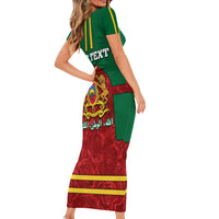 Morocco Proclamation Day Short Sleeve Bodycon Dress Marruecos Coat of Arms Roses Pattern