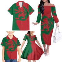 Morocco Proclamation Day With Flag Color Family Matching Off Shoulder Long Sleeve Dress and Hawaiian Shirt LT9
