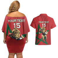 Morocco Rugby Custom Couples Matching Off Shoulder Short Dress and Hawaiian Shirt Lion Mascot Green Star