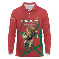 Morocco Rugby Custom Long Sleeve Polo Shirt Lion Mascot Green Star