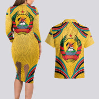 Mozambique Couples Matching Long Sleeve Bodycon Dress and Hawaiian Shirt with Yellow Red Green Swirl Design and Independence Day