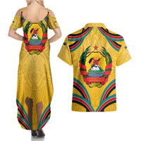 Mozambique Couples Matching Summer Maxi Dress and Hawaiian Shirt with Yellow Red Green Swirl Design and Independence Day TS04