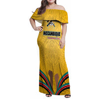 Mozambique Family Matching Off Shoulder Maxi Dress and Hawaiian Shirt with Yellow Red Green Swirl Design and Independence Day TS04