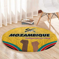 Mozambique Round Carpet with Yellow Red Green Swirl Design and Independence Day