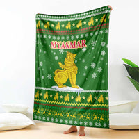 Myanmar Christmas Blanket with Green-Gold Theme, Chinthe Lion, and Santa Motif