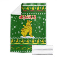 Myanmar Christmas Blanket with Green-Gold Theme, Chinthe Lion, and Santa Motif TS04