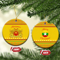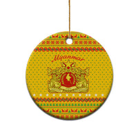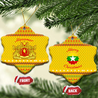 Myanmar Christmas Ceramic Ornament with Yellow-Red-Green Theme, National Emblem, and Star Motif