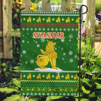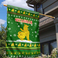 Myanmar Christmas Garden Flag with Green-Gold Theme, Chinthe Lion, and Santa Motif