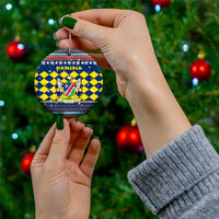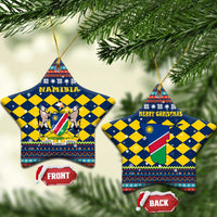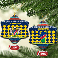 Namibia Christmas Ceramic Ornament with Blue-Yellow Diamond Pattern, Coat of Arms, and Flag Map Motif