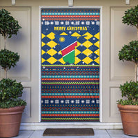 Namibia Christmas Door Cover with Blue-Yellow Diamond Pattern, Coat of Arms, and Flag Map Motif