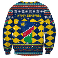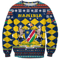 Namibia Christmas Sweatshirt with Blue-Yellow Diamond Pattern, Coat of Arms, and Flag Map Motif TS04