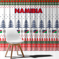 Namibia Christmas Window Curtain with Red-Green Theme, Coat of Arms, and National Flag Motif