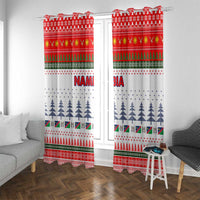 Namibia Christmas Window Curtain with Red-Green Theme, Coat of Arms, and National Flag Motif TS04