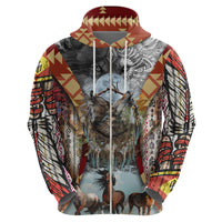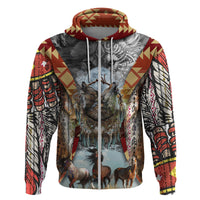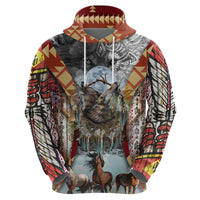 Native American Feather Headdress With Native Horses And Three Wolves In Moonlight African Pattern Hoodie TS04