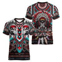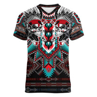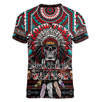 Native American Indian Warrior Skull Women V-Neck T-Shirt DT02