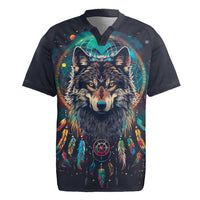 Native American Wolves Rugby Jersey with Dream Catchers Feathers
