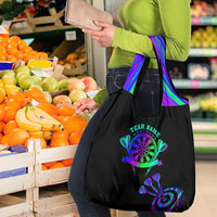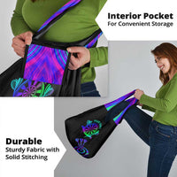 Neon Dartboard Darts Grocery Bag with Colorful Target and Psychedelic Swirl Pattern