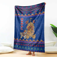 Nepal Christmas Blanket with Blue-Red Pattern, Hindu Chariot Scene, and Om Symbol Motif