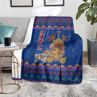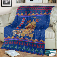 Nepal Christmas Blanket with Blue-Red Pattern, Hindu Chariot Scene, and Om Symbol Motif TS04