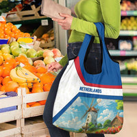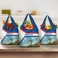 Netherlands Grocery Bag Dutch Windmill and Tulip Field Landscape in National Flag Colors TS04