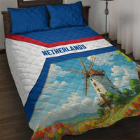 Netherlands Quilt Bed Set Dutch Windmill and Tulip Field Landscape in National Flag Colors TS04