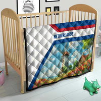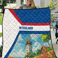 Netherlands Quilt Dutch Windmill and Tulip Field Landscape in National Flag Colors TS04