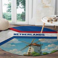 Netherlands Round Carpet Dutch Windmill and Tulip Field Landscape in National Flag Colors