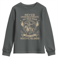Never Underestimate An Old Man Who Has Native Blood Youth Sweatshirt Native American Warrior TS11