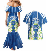 Nicaragua Independence Day 1821 Couples Matching Mermaid Dress and Hawaiian Shirt Coat Of Arms With Plumeria