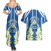 Nicaragua Independence Day 1821 Couples Matching Summer Maxi Dress and Hawaiian Shirt Coat Of Arms With Plumeria
