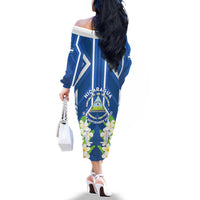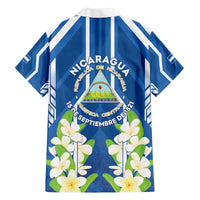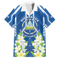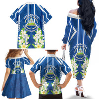 Nicaragua Independence Day 1821 Family Matching Off The Shoulder Long Sleeve Dress and Hawaiian Shirt Coat Of Arms With Plumeria