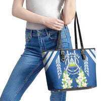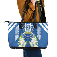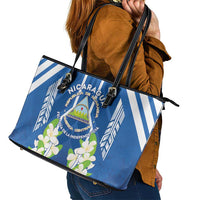 Nicaragua Independence Day 1821 Leather Tote Bag Coat Of Arms With Plumeria