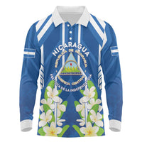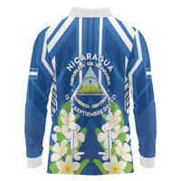 Nicaragua Independence Day 1821 Long Sleeve Polo Shirt Coat Of Arms With Plumeria