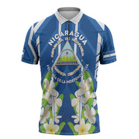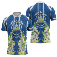 Nicaragua Independence Day 1821 Zipper Polo Shirt Coat Of Arms With Plumeria