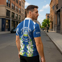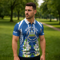Nicaragua Independence Day 1821 Zipper Polo Shirt Coat Of Arms With Plumeria LT05