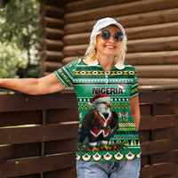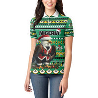 Nigeria Christmas Women Polo Shirt Eagle Santa African Pattern