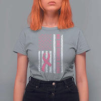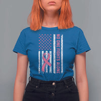 Nobody Fights Alone Pink Ribbon Flag T Shirt For Women Breast Cancer Awareness Support TS02