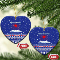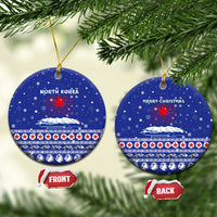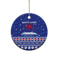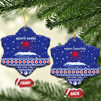 North Korea Christmas Ceramic Ornament with Blue Pattern, Red Star, and Snowy Mountain Motif