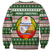 North Korea Christmas Sweatshirt with Green-Red Design, National Emblem, and Festive Snowflake Motif TS04
