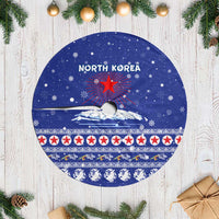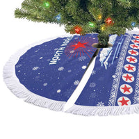 North Korea Christmas Tree Skirt with Blue Pattern, Red Star, and Snowy Mountain Motif