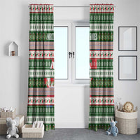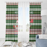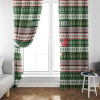 North Korea Christmas Window Curtain with Green-Red Design, National Emblem, and Festive Snowflake Motif