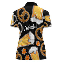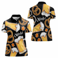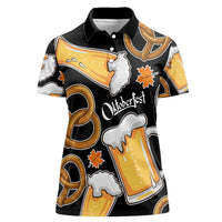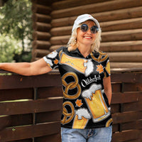 Oktoberfest Women Polo Shirt with Beer Mug and Pretzel Illustration Black Festive TS04