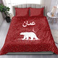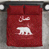 Oman Christmas Bedding Set with Red Geometric Design, White Oryx, and National Emblem Motif