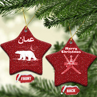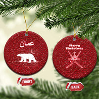 Oman Christmas Ceramic Ornament with Red Geometric Design, White Oryx, and National Emblem Motif