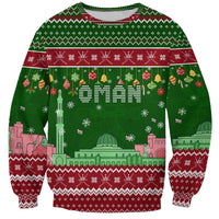 Oman Christmas Sweatshirt with Green-Red Pattern, Mosque and Fort Landmarks, and Festive Ornament Motif