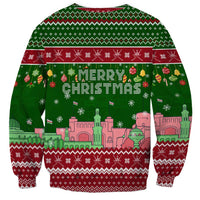 Oman Christmas Sweatshirt with Green-Red Pattern, Mosque and Fort Landmarks, and Festive Ornament Motif TS04